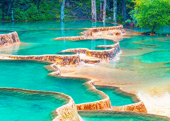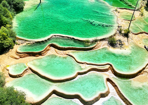 Wucai Chi (Multicolored Ponds): A cluster of 693 colorful ponds, the world's largest and highest-altitude open-air travertine pond group