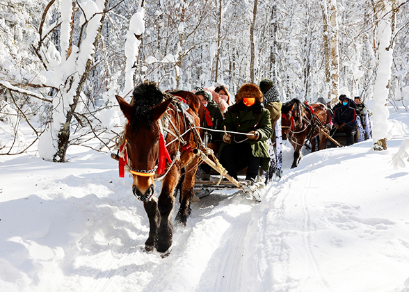 Ride snowmobiles with the "Snow Mountain Flying Dragon Team" through the forest sea. Driving a snowmobile through the primeval forest is an unforgettable experience. Competing against time, you can fully savor the thrill of speeding through the forest snowfield with the wind howling past, and enjoy the speed and passion deep in the snow world.
