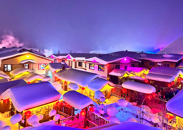 Take a bus to China Snow Town National Forest Park. Along the way, enjoy the rolling mountains draped in thick snow and the vast, boundless snowfield. This place boasts the tallest peaks, the densest forest seas, the thickest snow cover, and the clearest, most transparent sunlight in northern China.