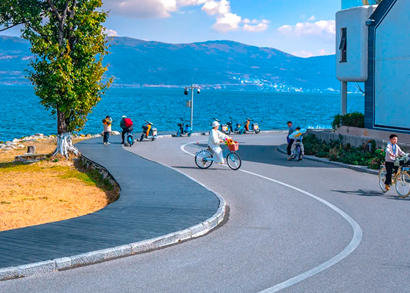 Erhai Lake Cycling: Romantic S-bend ride with professional photography.