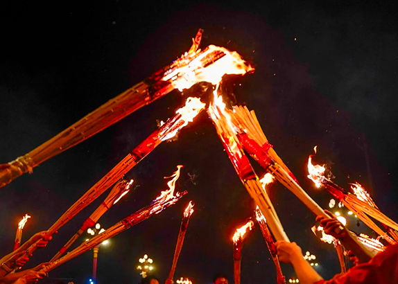 After lunch, we will take a coach to Chuxiong. The sacred Yi People’s Long Street Banquet kicks off with the Fire Festival Ceremony & Welcome Ritual, where the Yi people will share the legendary stories of their ethnic group with guests from afar. If you don’t know how to dance the Left-Foot Dance, the young Yi men and women will be happy to teach you – the best way to experience the local culture is to let loose and have fun! In addition, feel free to enjoy some drinks and embrace the bold spirit of "drink to your heart’s content and eat hearty portions of meat" at the warm and hospitable Yi People’s Long Street Banquet.(Reminder: In case that excessive number of participants may affect the dining quality, our agency reserves the right to make temporary adjustments to the catering arrangement. We assure you that the nutritious dinner will still become one of the most wonderful memories of your trip.) You will join the hospitable Yi people in a joyous "Ethnic Celebration". Later, follow the Yi people to participate in the Fire Festival Ceremony & Bonfire Party, and let the laughter and joy accompany you until bedtime. Check into the hotel after dinner.