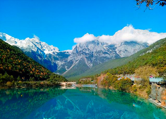 Next, we will head to Blue Moon Valley (complimentary battery car service is provided; no refund will be issued if the battery car cannot be used due to time constraints). The valley’s water originates from the eternal snow and ice of the snow mountain, which melts and flows down the steep cliffs, converging into mountain streams and rivulets, and finally forming crystal-clear, refreshing rivers in Blue Moon Valley. On sunny days, the water glows blue, and the valley is crescent-shaped, looking like a blue moon inlaid at the foot of Jade Dragon Snow Mountain from a distance.