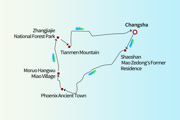 Morning: Depart from the hotel to Shaoshan, the birthplace of Mao Zedong. Visit Mao Zedong's Former Residence and Bronze Statue Square to honor the founding father of modern China.
