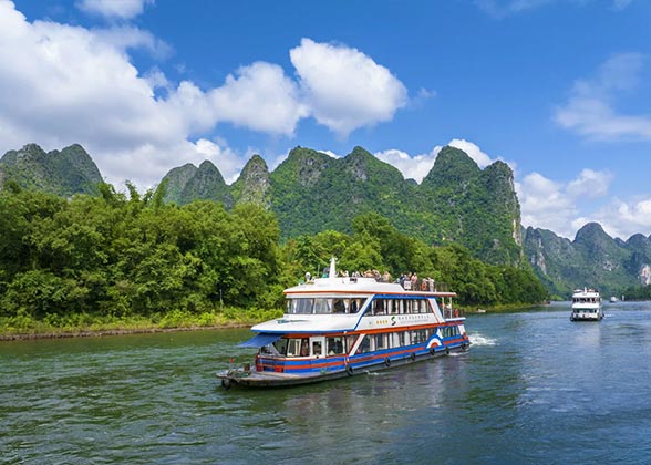 Classic cruise to see Guilin’s "mountains like bamboo shoots" along the Li River; post-cruise countryside tour lets you explore peaceful villages and pastoral scenery.