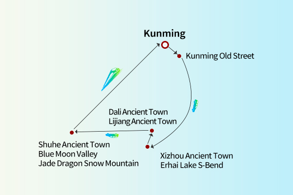 Arrive in Kunming via flight, where our professional team will meet you for a private transfer to your hotel. After check-in, enjoy free time to explore the city at your own pace. Wander through historic streets to discover authentic "Dian" (Yunnan) flavors hidden in old courtyard houses. Kunming, a charming city waiting for you to discover and explore, welcomes your arrival!