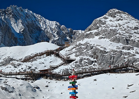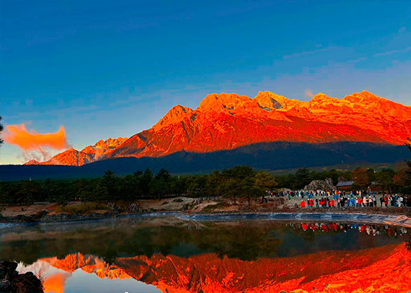 Next, head to the Jade Dragon Snow Mountain scenic area. Take the Spruce Plateau (Yunshanping) Cableway to admire the stunning alpine meadows. Surrounded by lush, towering spruce forests and the majestic silhouettes of snow-capped peaks, you will find yourself immersed in a tranquil "sea of trees."