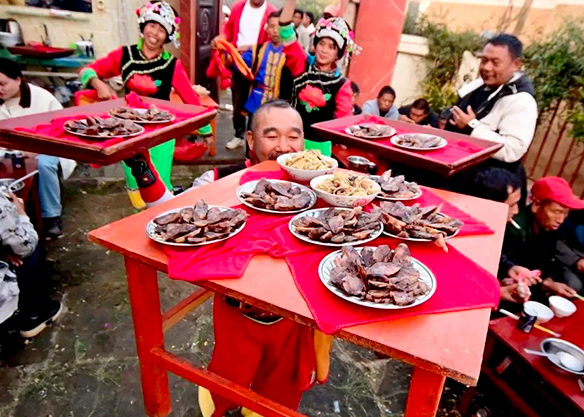 Later, head to the lakefront to see the Dianchi Seagulls (Seasonal: Nov 1 – Mar 15). Interact with these "spirits of the plateau" against the backdrop of the water. Afterward, travel by bus to Chuxiong to experience the Yi Long Street Banquet. The evening begins with a sacred Fire Totem Welcome Ceremony. Learn the traditional Left Foot Dance from local Yi youths and join a vibrant Bonfire Party before retiring to your hotel.