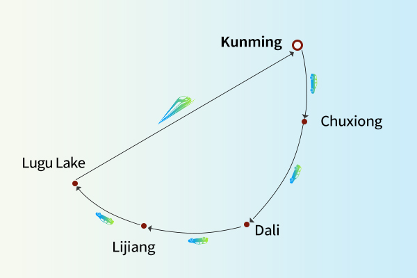 - Natural Scenery: Dianchi Lake + Erhai Cruise + Snow Mountain + Lugu Lake